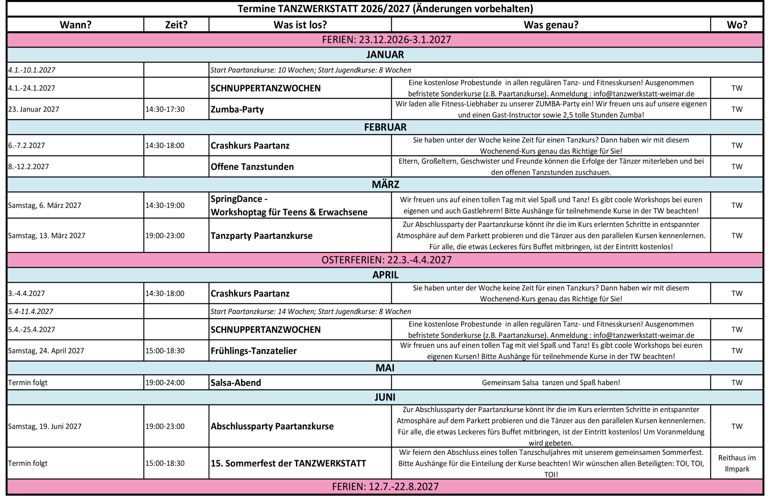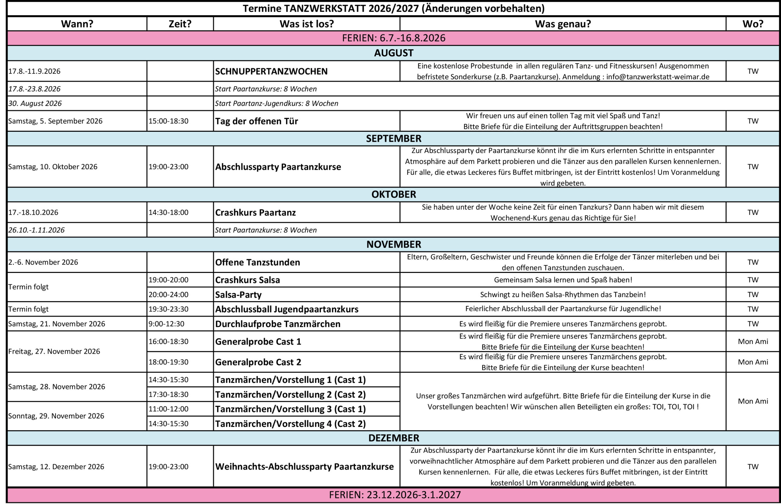 Alle unsere Termine für das ganze Schuljahr im Überblick!