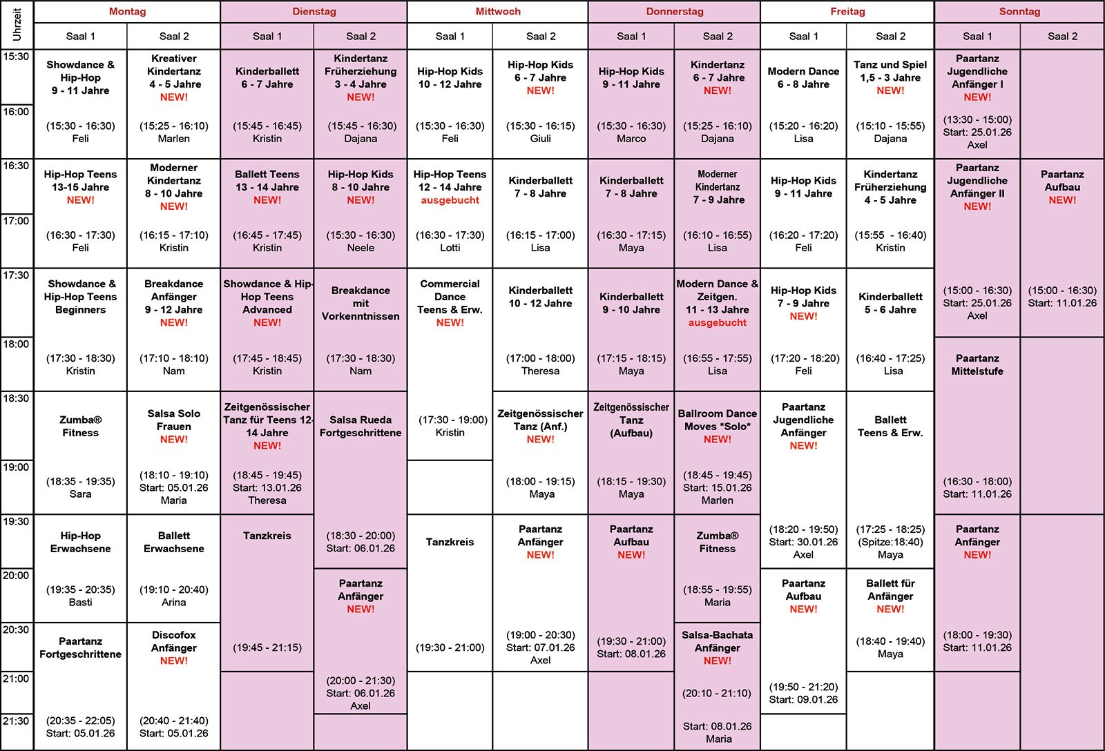 Die aktuellen Sonderkurse mit befristeter Laufzeit entnehmen Sie bitte dem Stundenplan und den Kursbeschreibungen.